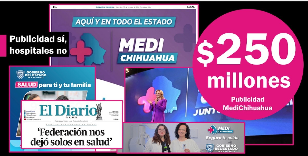 Derroche en publicidad: En vez de construir un nuevo hospital o centros de salud, la gobernadora María Eugenia Campos Galván gastó 250 millones de pesos en la campaña publicitaria de MediChihuahua, la más alta de la historia: