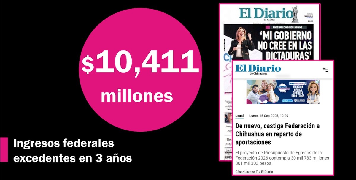 “De nuevo, castiga Federación a Chihuahua en reparto de aportaciones” para 2026, publicó El Diario de Chihuahua.