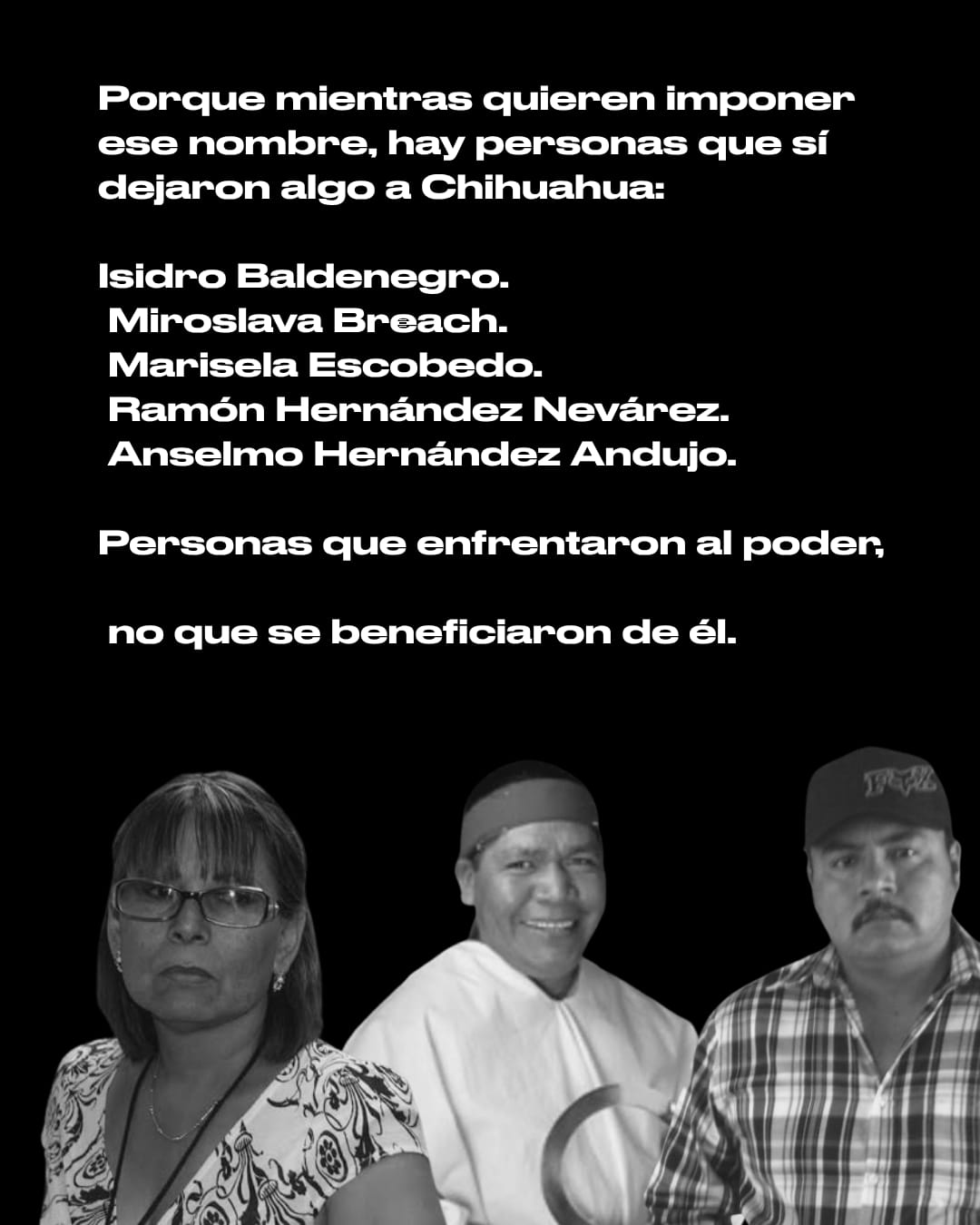 • “Personas que enfrentaron al poder: no se beneficiaron de él”.